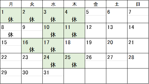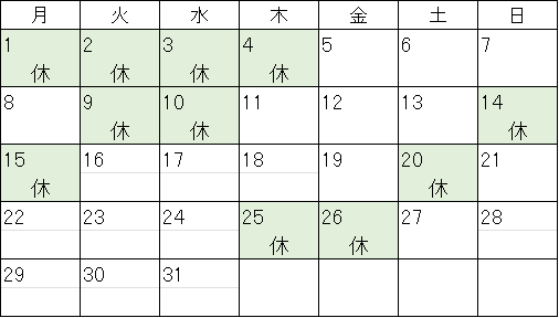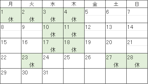 ※祝日の場合は休業とさせていただきます。