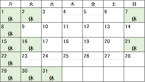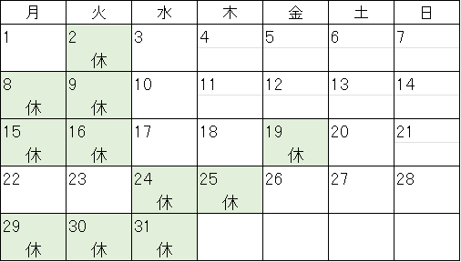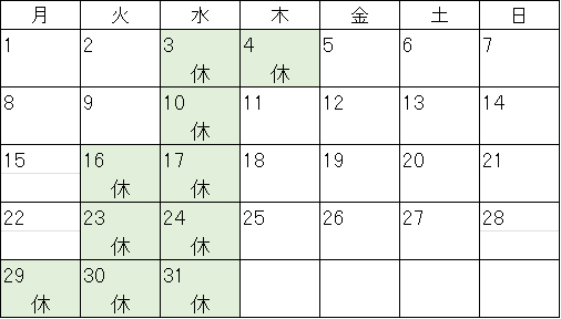 ※祝日の場合は休業とさせていただきます。